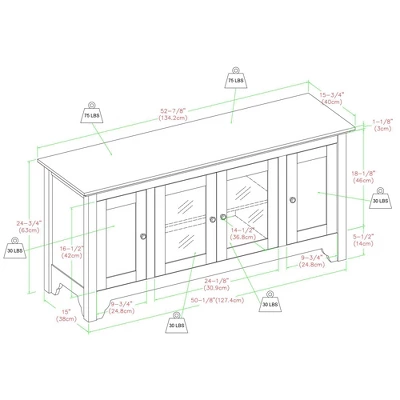 Built to support TVs up to 55 inches, this wood media console is the perfect solution for your home entertainment. Features four media cabinets with adjustable shelving and a built in cable management system to fit your components. Crafted from high-grade MDF with wood veneer finish to fit your home decor.