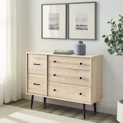Ivora Lifted Mid-Century Modern Asymmetrical 5 Drawer Dresser – Saracina Home