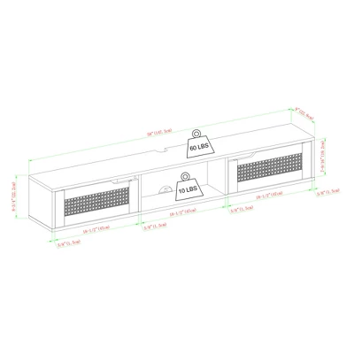 Be the first to review “Modern Boho Floating TV Stand For TVs Up To 65″ With Rattan Doors – Saracina Home” Cancel reply