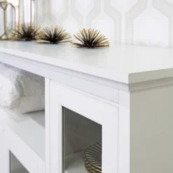 Feel the ease of customizable organization with the Industrial Metal Mesh Sliding Door 70โ TV Stand by Saracina Home. Four adjustable shelves and two sliding doors provide plenty of versatility for keeping hosting essentials accessible but hidden, depending on the occasion. Metal mesh details and the angled frame provide a rustic look that enhances the living room from a casual hang-out spot to a sophisticated meeting place. The long-lasting MDF wood and durable laminate build provide a sturdy console for your next movie party or game night.