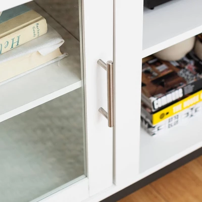 Pierceton Modern Double Glass Door With Metal Legs TV Stand For TVs Up To 58″ White – Saracina Home