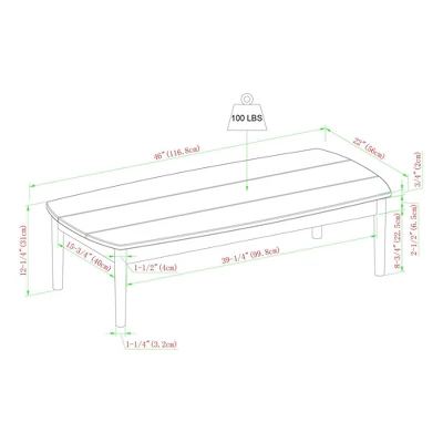 | Table Piece 1 | 12.25 Inches (H) x 46 Inches (W) x 22 Inches (D) |
