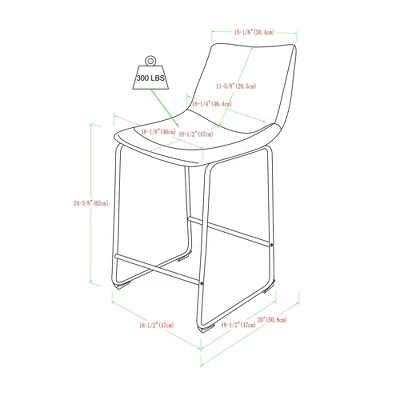 Raise a glass to Saracina Home’s Laslo Mid Century Modern 26” Faux Leather Counter Stool Set. This pair of contemporary chairs invites you to sit and stay for a while with their lightly cushioned seats and curved silhouettes. Sturdy metal legs elevate the chairs to 26-inch height, ideal for kitchen counters or dining tables. The durable faux leather upholstery can be effortlessly wiped clean with a damp cloth, so your home will always look and feel ready to host your next guest.